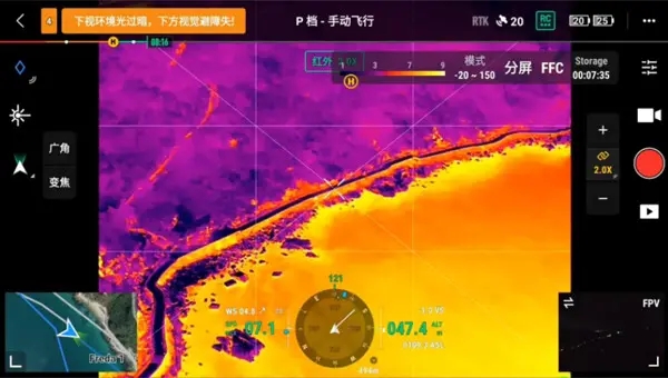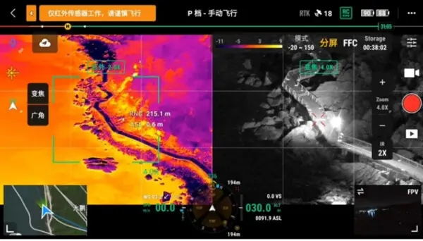 供熱管網(wǎng)在整個供熱系統(tǒng)中具有重要的地位,面對龐大的供熱管網(wǎng),管網(wǎng)泄漏普查中傳統(tǒng)人工巡檢方式效率低、反應(yīng)慢、失誤多。紅外熱成像關(guān)注的是熱源,而不是可見光,可以拍攝設(shè)備的過熱點、建筑物熱量流失位置。對于直埋供熱管道,通過紅外熱成像儀航拍,得到直埋供熱管道上方地面的熱圖像,從而監(jiān)測管道的完好程度,快速篩查疑似泄漏點,降低水耗損失及運行風(fēng)險。無人機搭載紅外熱成像儀的巡檢方式靈活機動,受地形影響小,大大提高了巡檢效率。