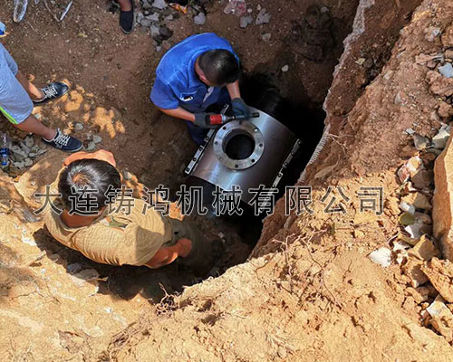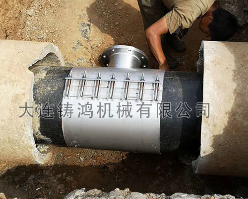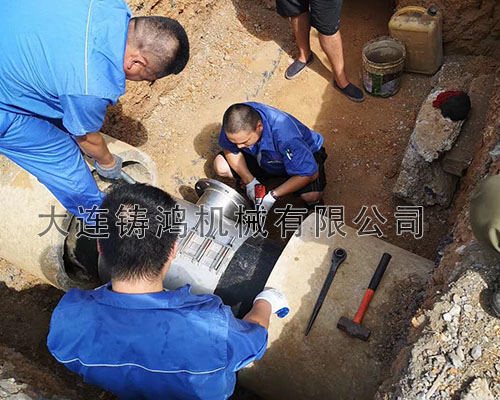 大連港一處球墨鑄鐵管需要分流,DN500的管徑分DN200的小管,帶法蘭盤,管道壓力為10公斤,采用 “鑄鴻”多功能分流三通進行分流。