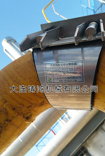 盤(pán)錦油田天然氣管道發(fā)生泄漏,管徑為108,壓力為0.3mpa,由于泄漏在彎頭處,使用“鑄鴻”彎頭修補(bǔ)器進(jìn)行快速堵漏。